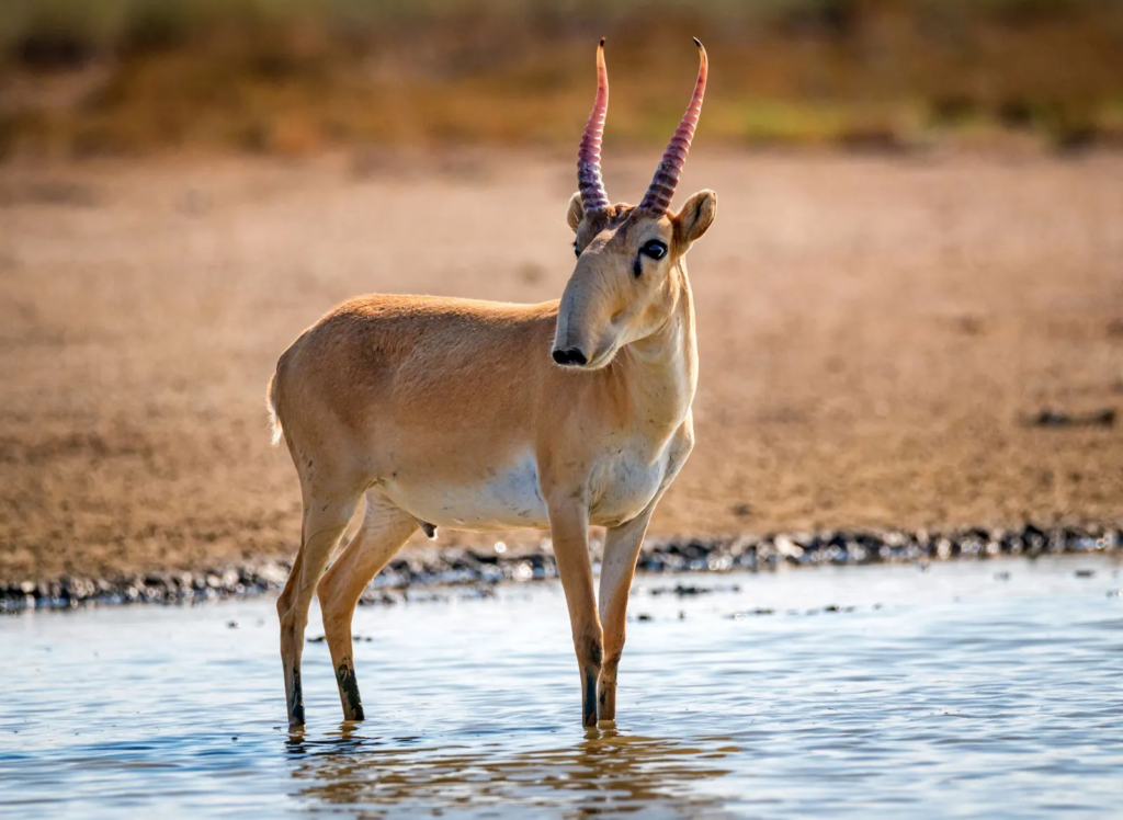 Le Saïga est une antilope unique qui vit dans les grandes steppes d’Asie centrale, notamment au Kazakhstan, en Mongolie et en Russie. Reconnaissable à son nez très particulier, cet animal est aujourd’hui considéré comme l’un des mammifères les plus menacés de la steppe.Actions pour protéger les saïgas et préserver leur reproduction